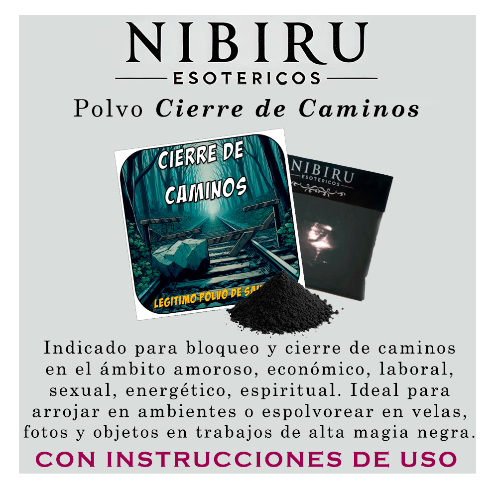 Polvo clásico de alta magia negra. Ritualizado y consagrado para cerrar caminos y frenar el avance de una persona en lo amoroso, económico, laboral, familiar o social. Su energía actúa generando trabas, estancamiento, rachas de mala suerte y frustraciones continuas, impidiendo que la persona trabajada alcance sus metas o acceda a oportunidades. Este polvo potencia los efectos de cualquier trabajo de magia negra, amplificando bloqueos, maleficios y castigos energéticos. Ideal para trabajos de magia negra, cierre de caminos, maleficios, bloqueos energéticos, destrucción y castigo.