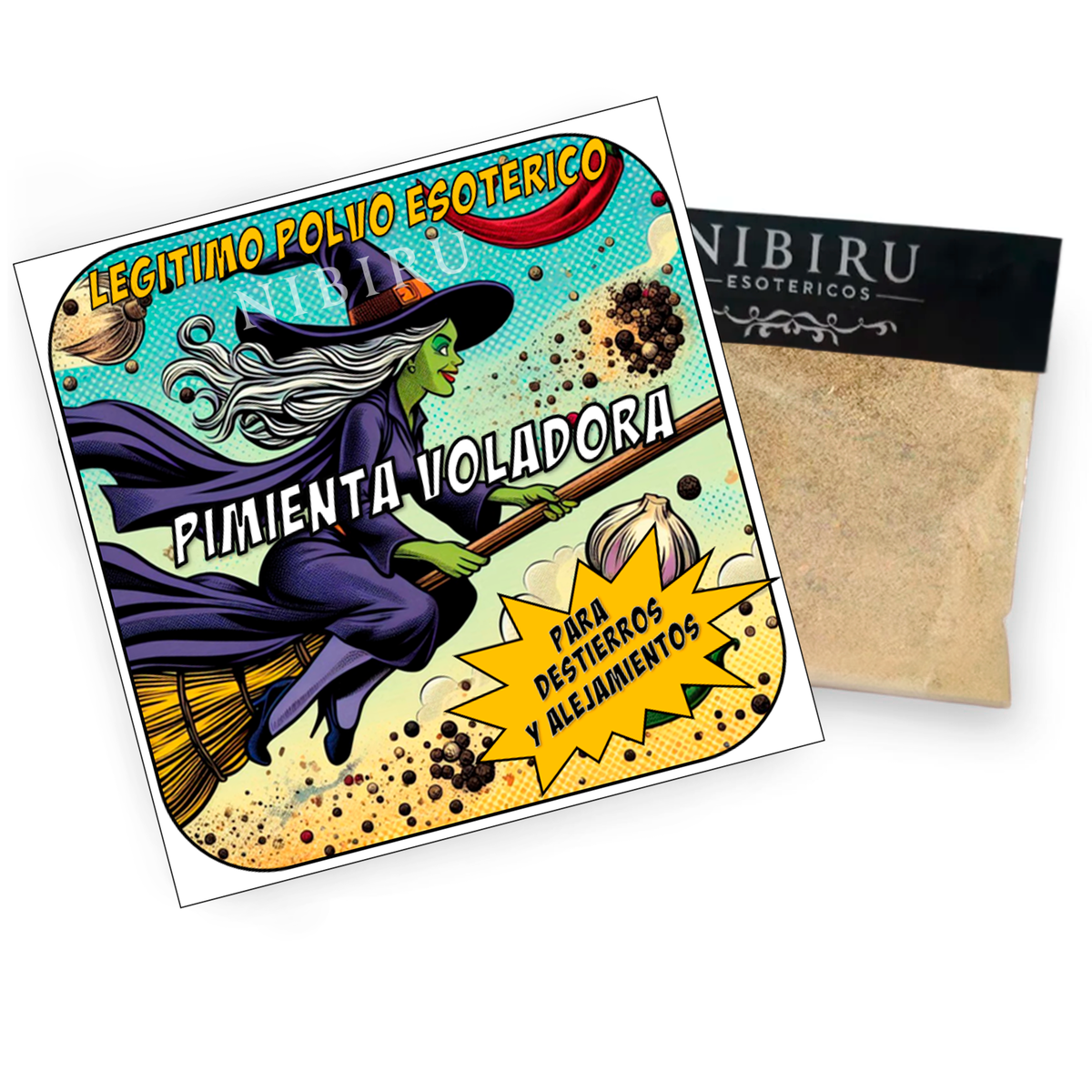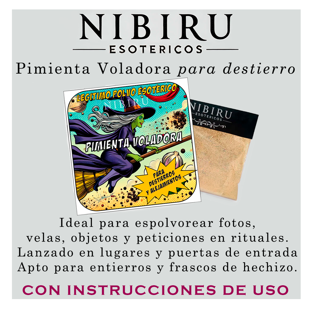Polvo de acción cortante, expulsiva y protectora, utilizado para alejar personas indeseadas, enemigos, rivales amorosos, romper vínculos nocivos y neutralizar influencias negativas en el entorno. Su vibración firme y directa actúa despejando caminos, cortando ataduras energéticas y alejando cualquier persona que perturbe la armonía personal o espiritual. Es una herramienta imprescindible en rituales de defensa, limpieza de ambientes y protección contra energías densas o envidias.