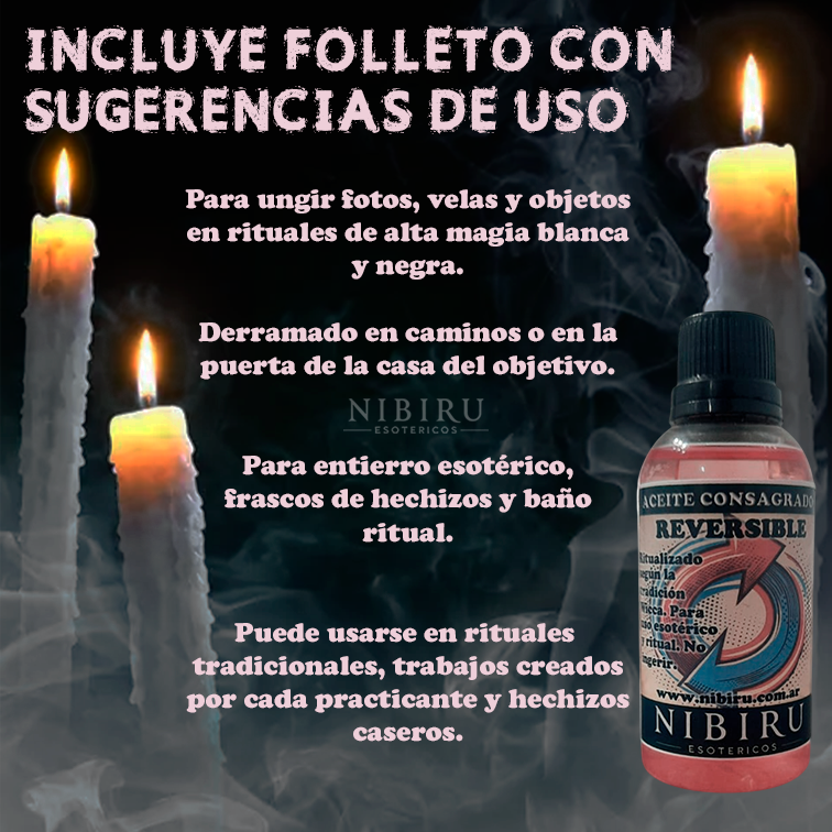 Utilizar para ungir velas, amuletos, muñecos, papeles rituales o esquinas de ambientes. Ideal para baños de descarga, entierros simbólicos y refuerzo de rituales de defensa y reversión. El producto contiene un folleto explicativo con sugerencias de uso, las cuales pueden ser modificadas libremente por cada practicante en función de su propia tradición y estilo ritual.