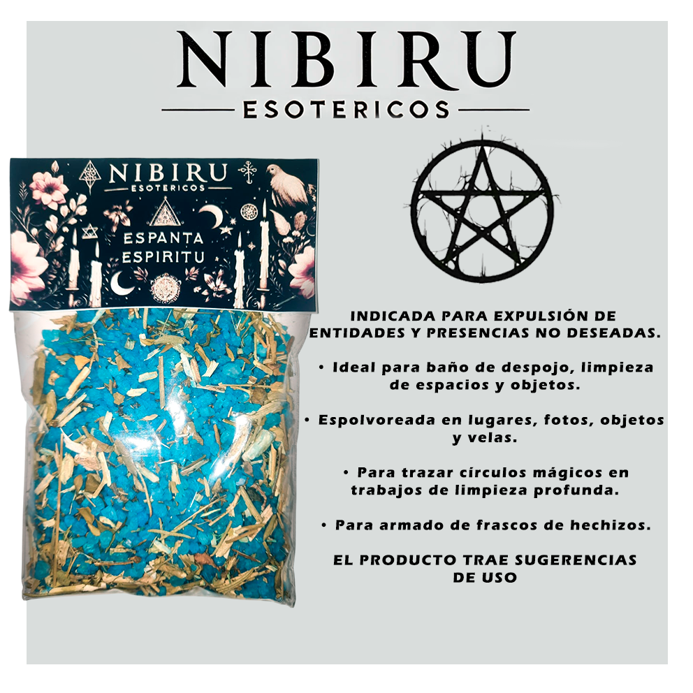 Sal esotérica consagrada para ahuyentar entidades, espíritus perturbadores y presencias no deseadas. Su fórmula está diseñada para cortar interferencias espirituales, limpiar espacios cargados y cerrar portales energéticos abiertos accidentalmente. Actúa como barrera vibracional, devolviendo la paz a hogares, altares o personas afectadas por influencias invisibles. Ideal para rituales de defensa espiritual, sellado energético y limpiezas profundas.