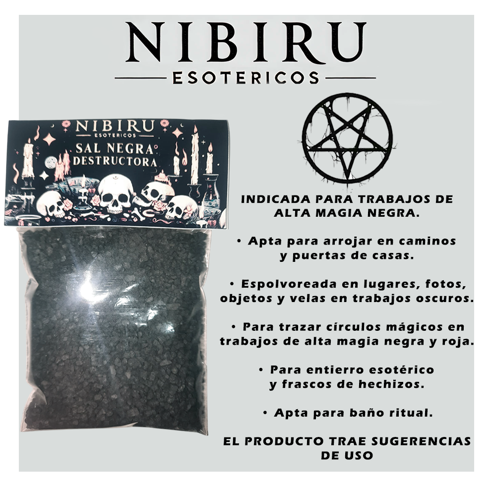 Poderosa herramienta esotérica consagrada para cortar, destruir, y arrasar con todo aquello que perjudica o estorba. Ritualizada bajo influencias oscuras y planetarias específicas, esta sal canaliza energías de ruptura, justicia y venganza. Su acción es directa y profunda: cierra caminos, disuelve vínculos y provoca caídas energéticas en la persona trabajada. Es ideal para rituales de separación, corte, devolución de trabajos y castigo esotérico.
