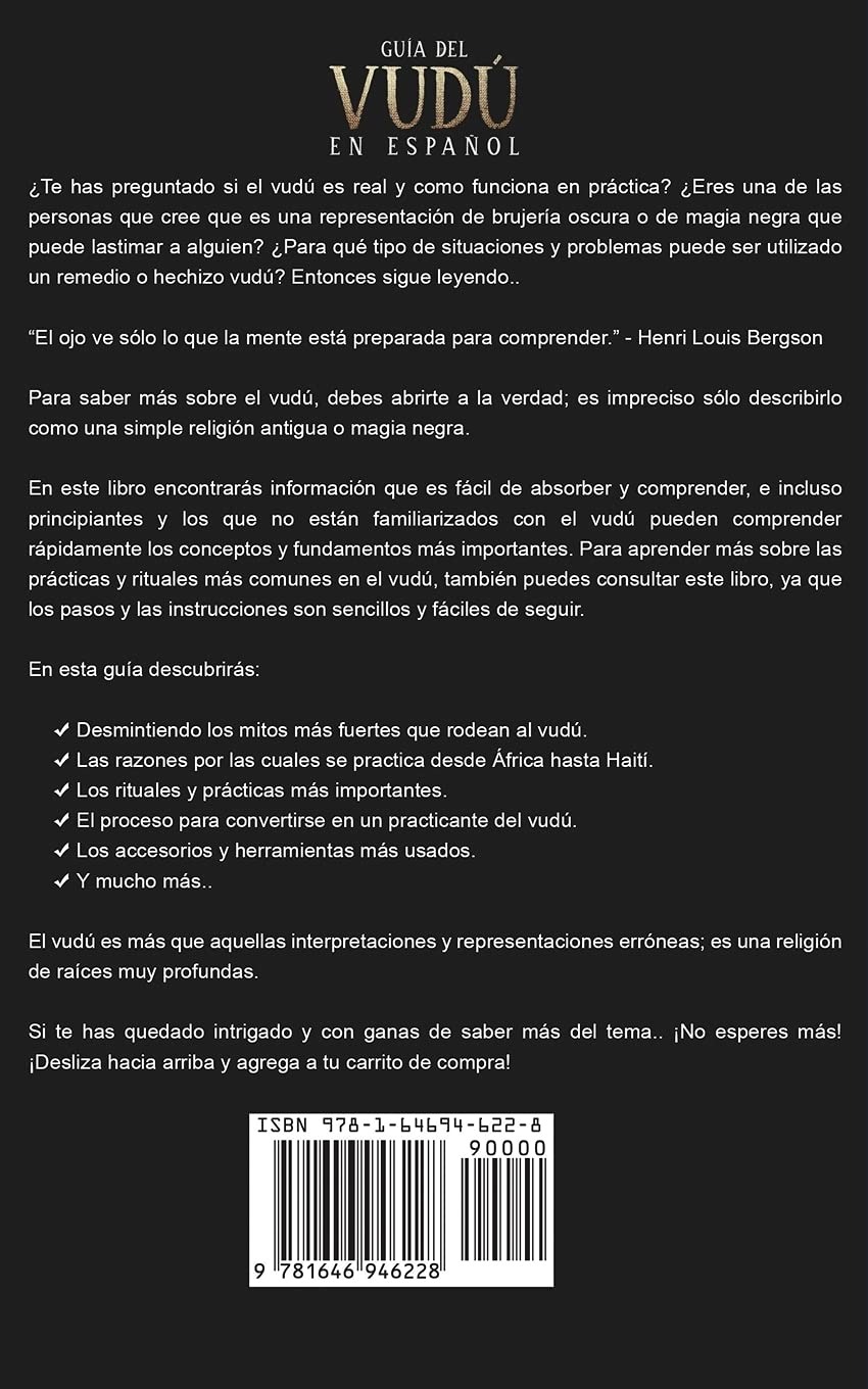 Este libro ofrece una introducción accesible y desmitificadora sobre el vudú, alejándose de los prejuicios que lo asocian únicamente con brujería oscura o magia negra. Presenta al vudú como una religión ancestral con raíces profundas y prácticas rituales significativas. La guía está pensada para principiantes o curiosos sin experiencia previa, explicando de forma clara conceptos, rituales, herramientas y pasos básicos para comprender y practicar el vudú. Además, desmiente mitos populares y explora su historia desde África hasta Haití.