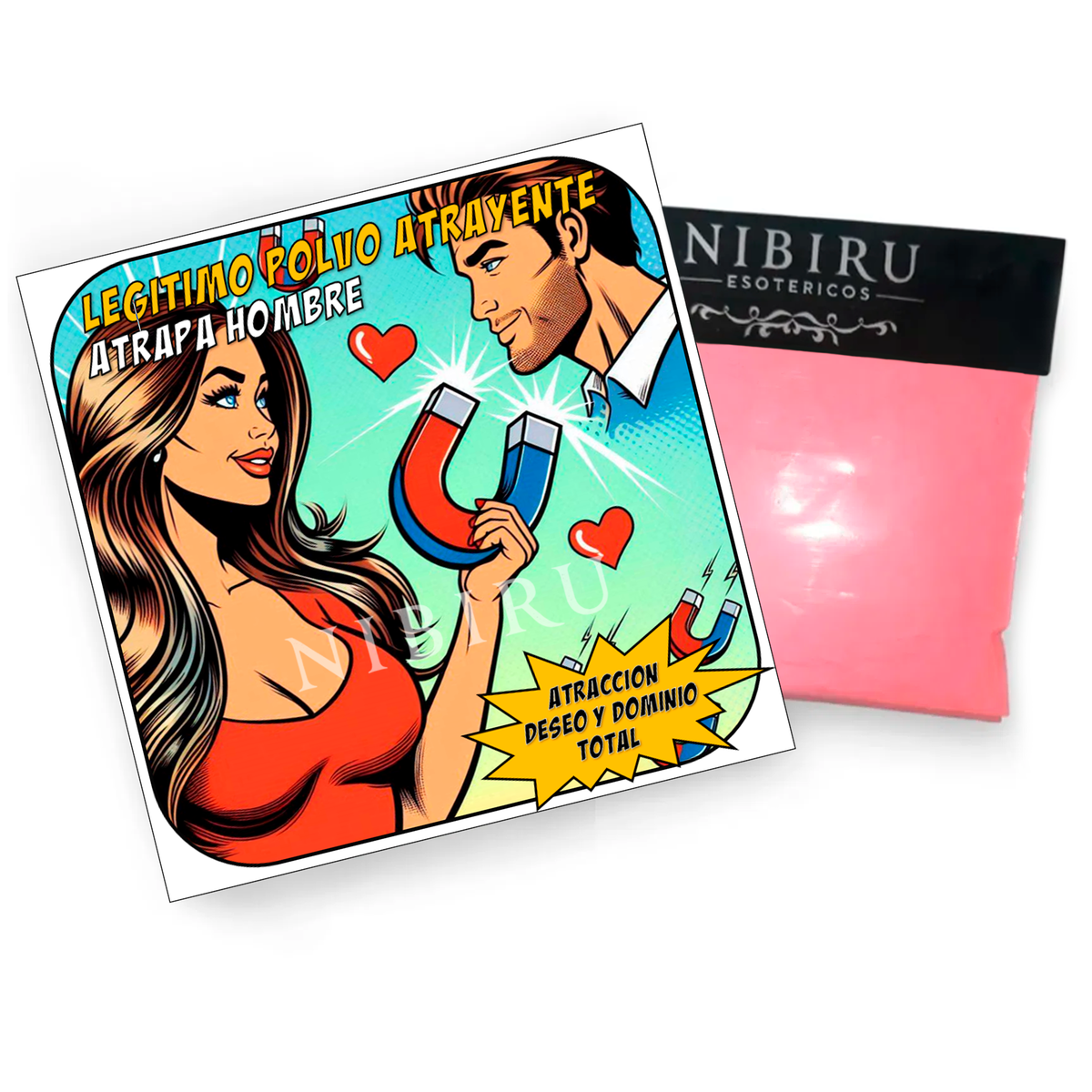 Potente preparado esotérico ritualizado para atraer, seducir y dominar emocionalmente al hombre deseado. Su energía actúa sobre el deseo, la fijación y la necesidad afectiva, provocando que la persona trabajada se sienta atraída, piense insistentemente en vos y busque acercarse de forma afectiva, íntima o sentimental.