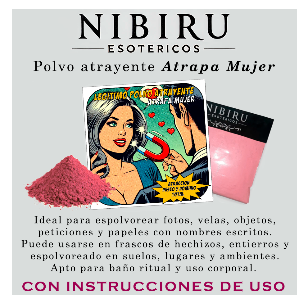 Potente preparado esotérico ritualizado para atraer, seducir y dominar emocionalmente a la mujer deseada. Su vibración magnética actúa sobre el deseo, la fijación y la necesidad afectiva, provocando que la persona trabajada se sienta atraída, piense insistentemente en vos y busque acercarse de forma afectiva, íntima o sentimental.