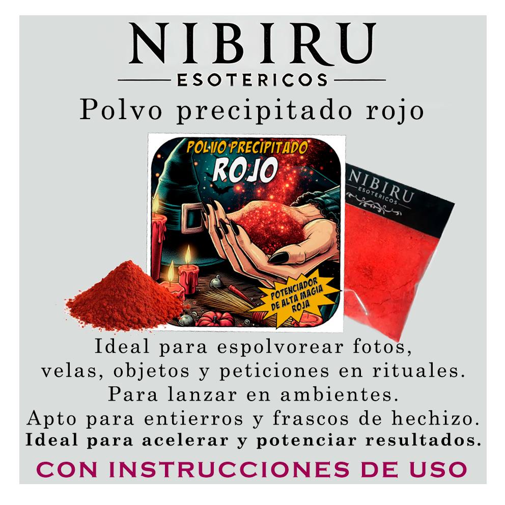 Polvo tradicional de la magia afrocaribeña, preparado para potenciar y sellar todo tipo de trabajo de alta magia roja o negra, incluyendo amarres oscuros, retornos y uniones forzadas. Favorece la rápida manifestación de resultados y evita que se anulen o debiliten con el paso de los días, asegurando efectos firmes y duraderos. Es ideal para reforzar amarres, trabajos de dominio, retornos, endulzamientos, obsesiones, fidelidades, uniones y desesperos amorosos, entre otros.